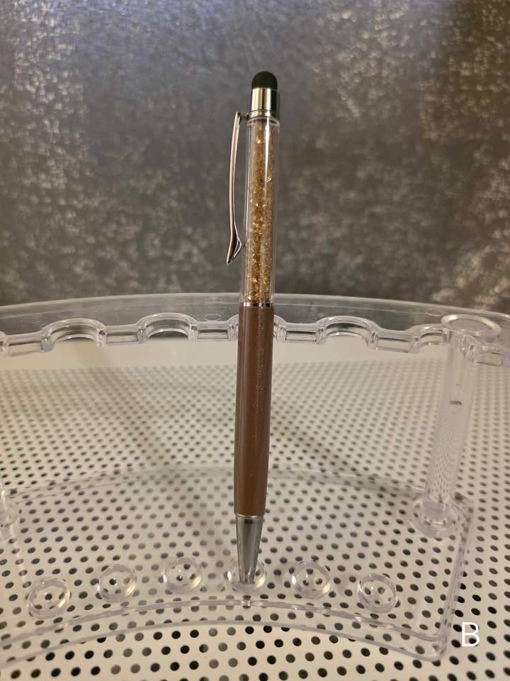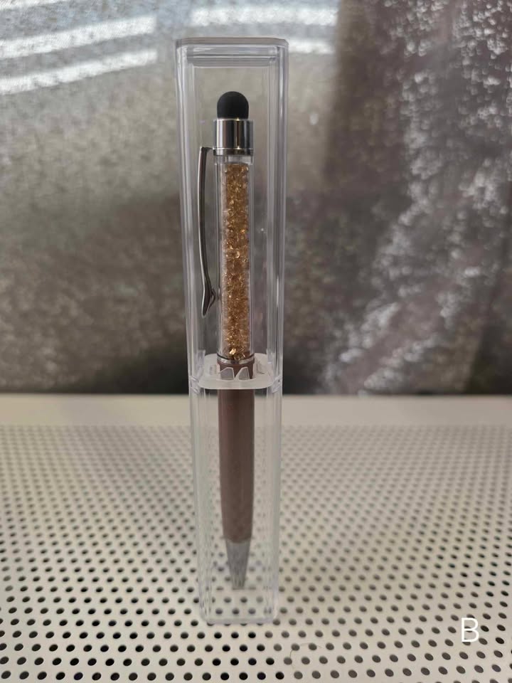 Ball Point Brown Stylist Pen with Crystals and Clear Case
