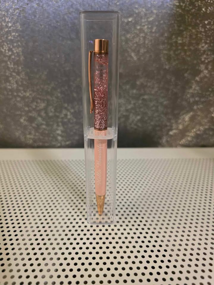 Ball Point Glitter Hello Beautiful Pen with Rose Gold Accents and Clear Case