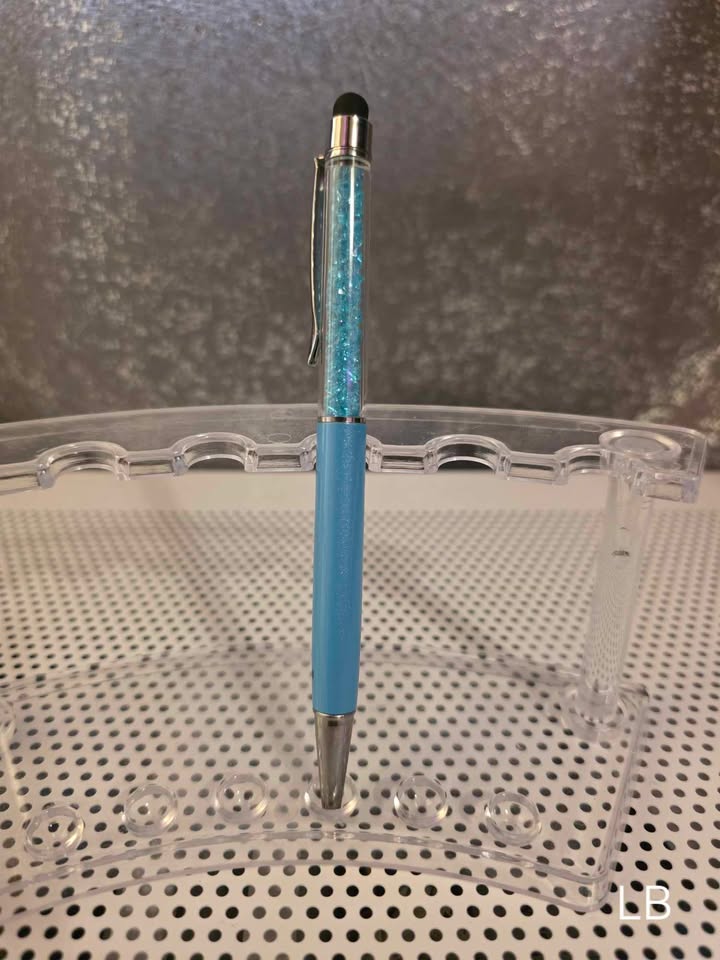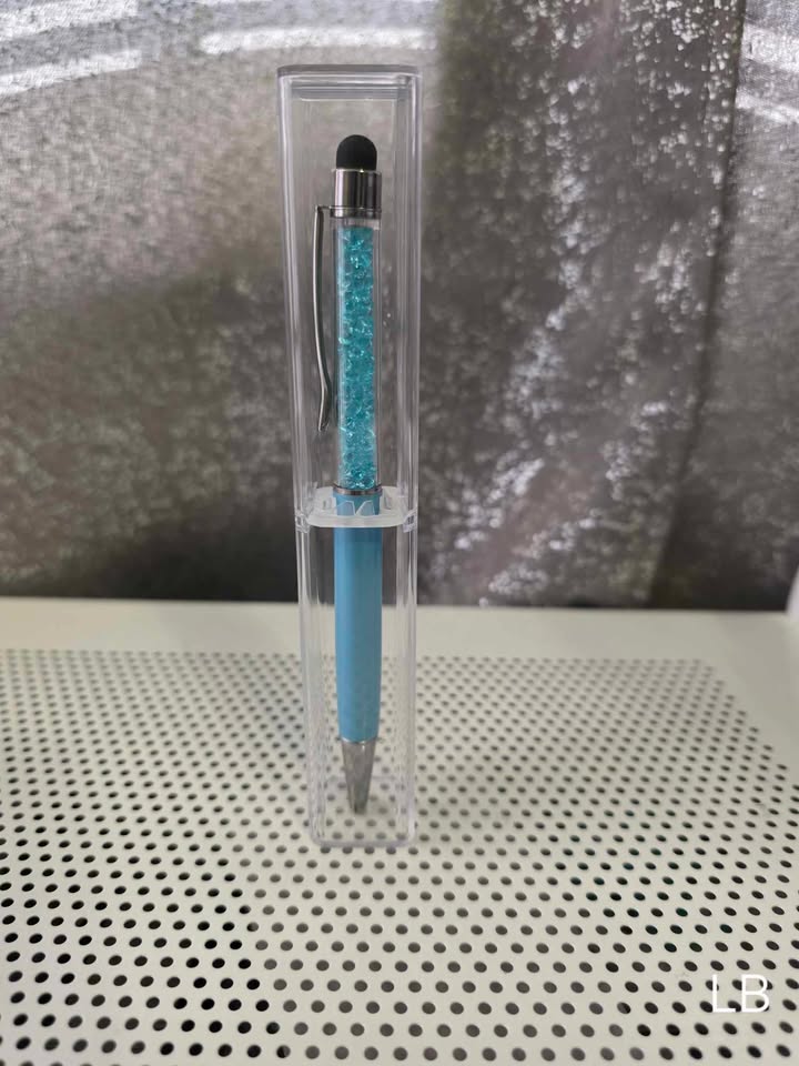 Ball Point Light Blue Stylist Pen with Crystals and Clear Case