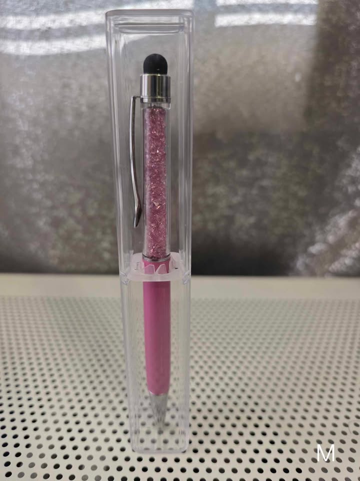 Ball Point Mauve Stylist Pen with Crystals and Clear Case