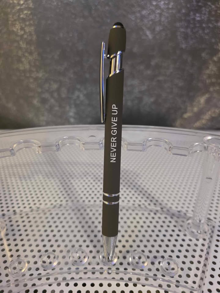 Ball Point Stylist and Inspirational Pen with Clear Case Never Give up