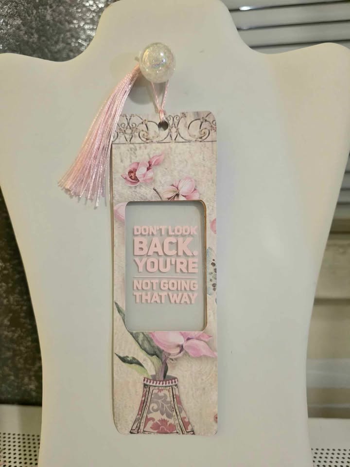 Handmade Cardstock, Vinyl Bookmark with Tassel, Don't Look Back