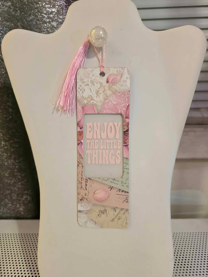 Handmade Cardstock Vinyl Bookmark with Tassel. Enjoy the little things