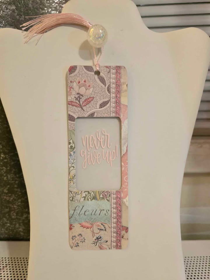 Handmade Cardstock Vinyl Bookmark with Tassel Never Give Up