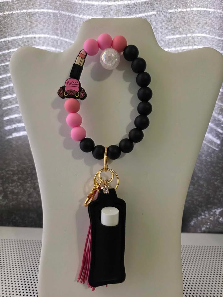 Handmade Keychain Wristlet with Lipstick and Ethnic girl Focal beads, this wristlet also comes wit a Lip Balm Holder, Lip Balm, Tassel and a charm.