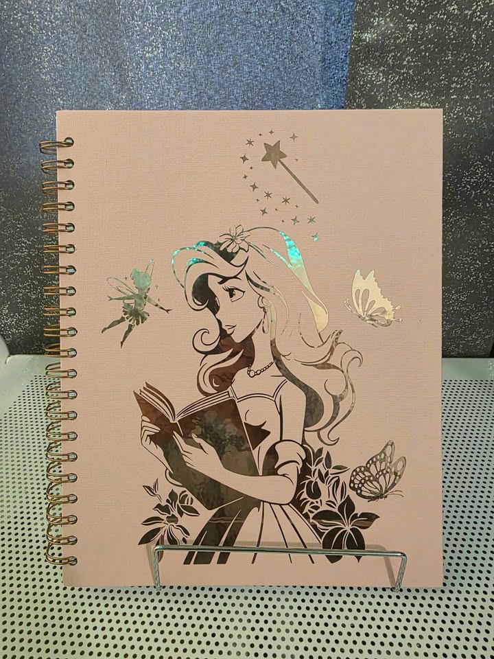 Handmade Spiral Journal with fairy and Princes Foil Design