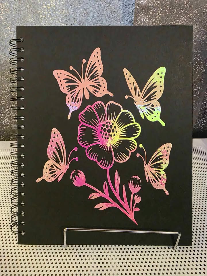 Handmade Spiral Notebook with Pink Foil Flower and Butterfly Design
