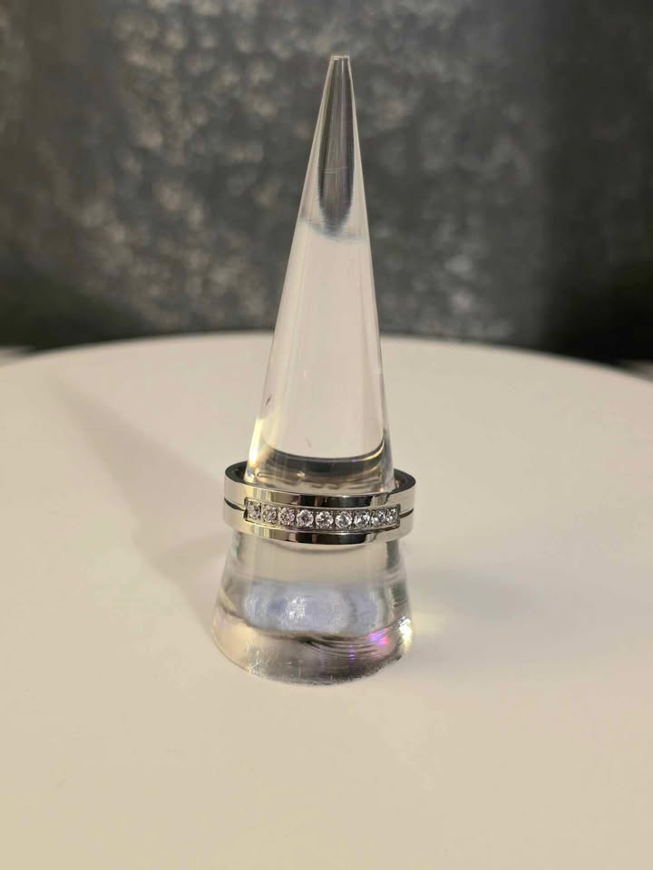 This precision-crafted stainless steel ring features cubic zirconia stones set with expert craftsmanship. The durable stainless steel construction ensures long-lasting wear without tarnishing, while the CZ stones provide brilliant sparkle comparable to diamonds at a fraction of the cost.