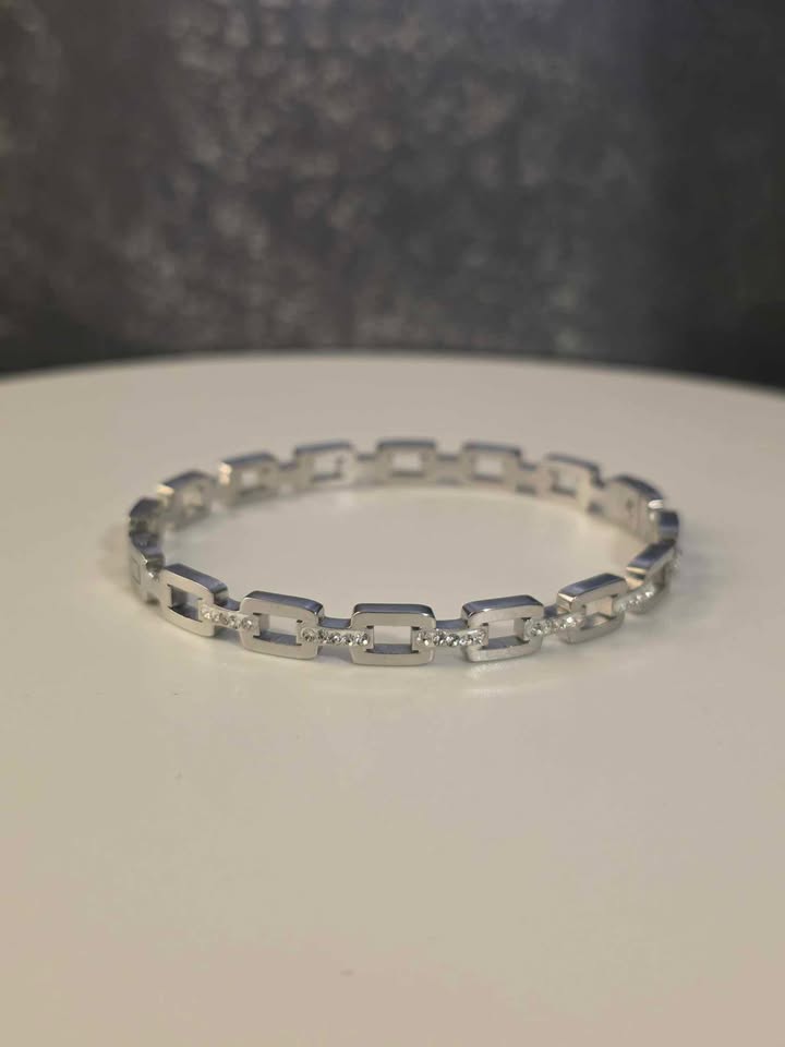 This precision-crafted stainless steel bracelet features distinctive square links that create a bold, contemporary profile. Engineered for durability with corrosion-resistant properties, it maintains its polished appearance through daily wear. The secure clasp mechanism ensures reliable fastening while the versatile design transitions seamlessly from casual to formal settings.